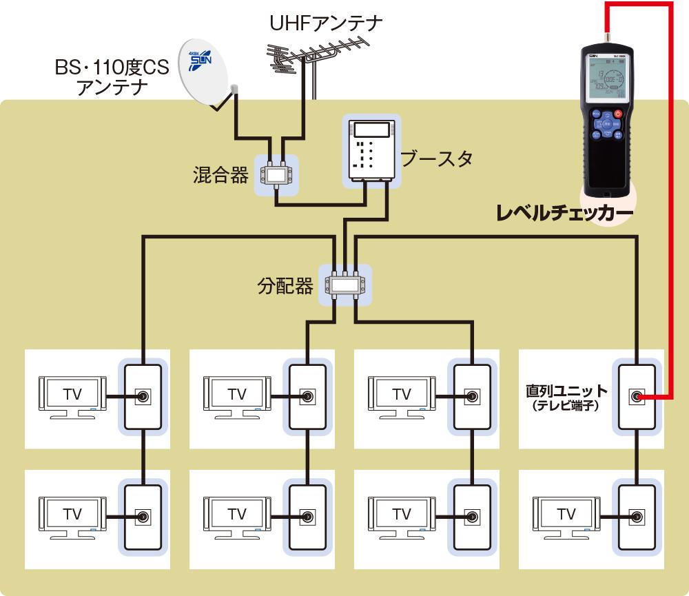 電波レベルが不足している場合はブースターが必要です。レベルチェッカーで適正レベルを客観的にチェックできるため、過剰な設備投資を回避できます。