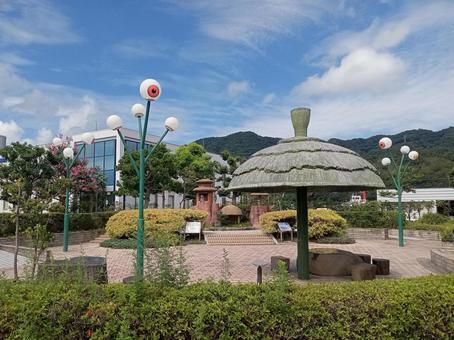 鬼太郎ロードの街路灯は、妖怪をモチーフにした個性的なデザインが施されています。昼間は装飾として観光客の目を楽しませ、夜には優しく通りを照らします。