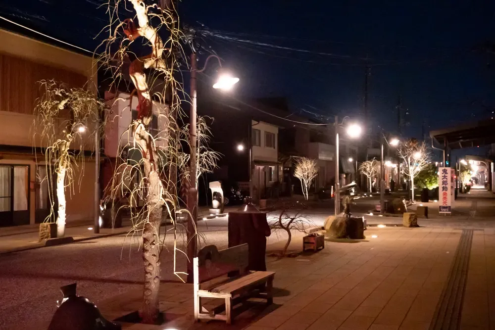 夜の鬼太郎ロードには、一味違う幻想的な空間が広がります。