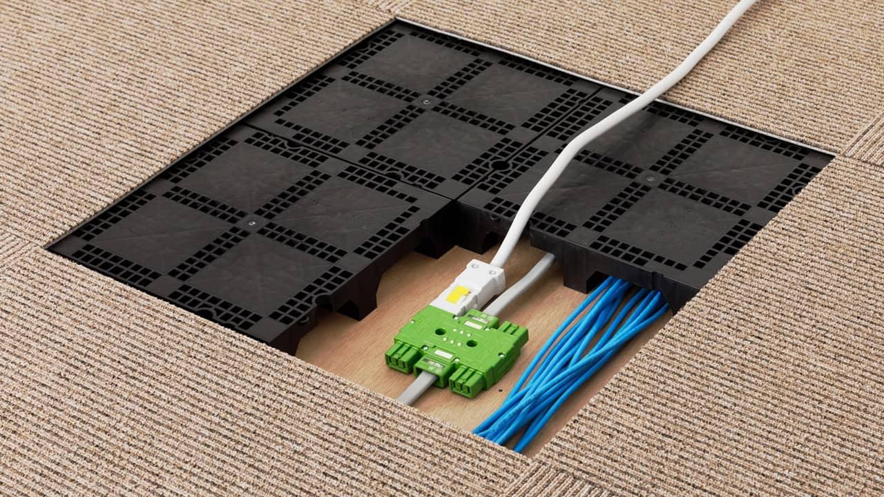 床を持ち上げてできた下の空間(配線ピット)に、配線をまとめて収納できます。