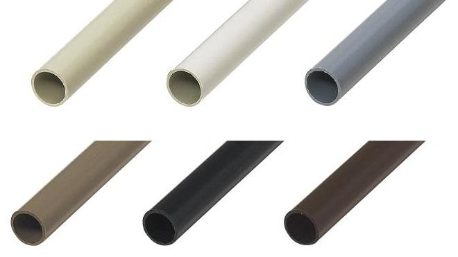 VE管(硬質塩化ビニル電線管)は、硬質PVC製の直管。直線性と固定性に優れ、露出配管で多用されます。