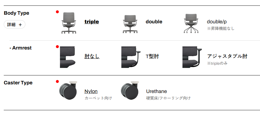 直感的な操作ダイヤル:昇降やロッキングのロック操作は、全体のデザインを損なわないレバーやボタンに集約。触り心地の良いエラストマー素材を採用し、操作感にもこだわっています。