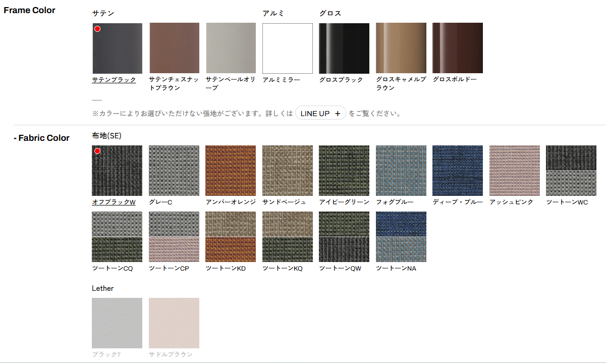こだわりのカラー&素材:リネンライクな光沢を持つオリジナル張地や、北欧の名門〈Kvadrat〉社のファブリック、さらには上質な本革までラインナップ。フレームもサテン塗装やグロス塗装など、質感の異なるバリエーションが揃っています。