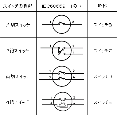 スイッチ種類 | 名称 | 特徴 | 主な用途 |