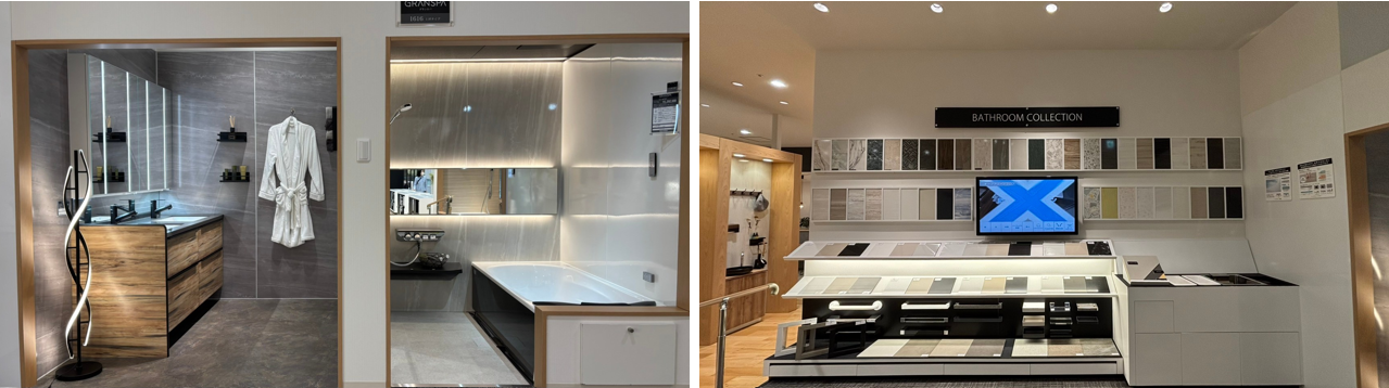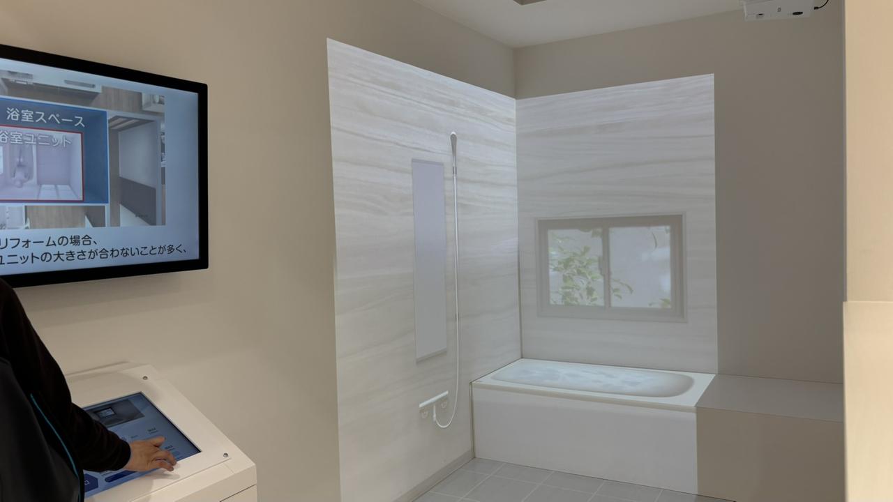 バスルーム:壁パネルや浴槽の質感、保温性の違いを体感