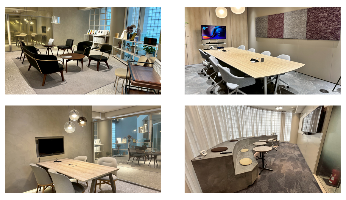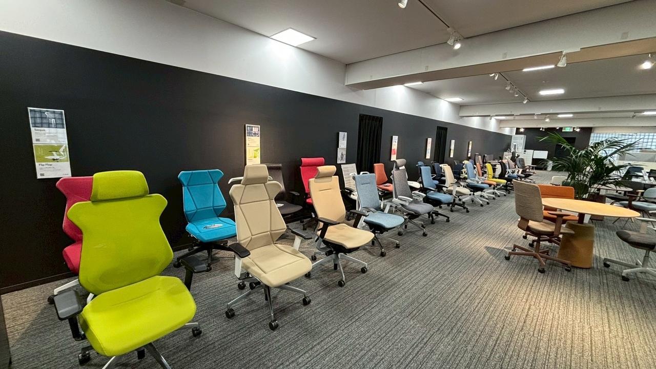 イトーキが誇る最新家具の展示フロア。今回ご紹介した「サウンドソファ」や「バーテブラ03」など、数々のプロダクトに実際に触れ、その品質を確かめることができます。